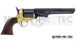 Revolver à poudre noire calibre 36 ou 44 au choix, réplique du Navy 1851 à carcasse ouverte en laiton et bronzé noir. Revolver en vente libre qui tir des billes de plomb à recharger soi-même comme à l'époque.