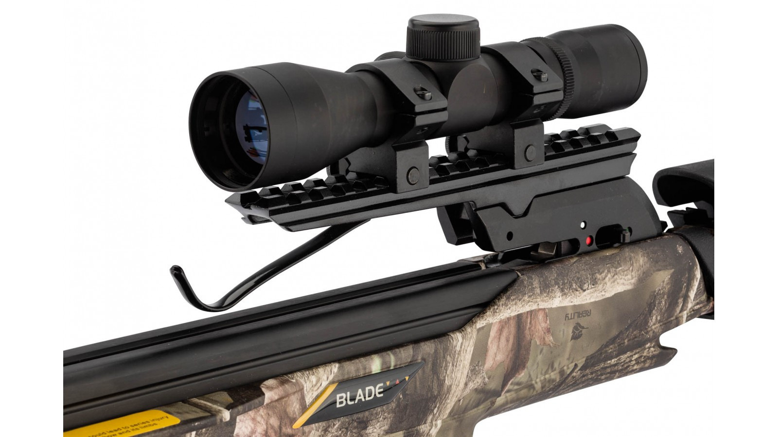 Arbalète à poulies compacte d'une puissance de 175 livres, la Blade est une arbalète tactique avec un arc compact. La vitesse obtenue est de 340fps avec un entraxe de 43cm de large. Un garde main vous permettra un bon maintien lors de vos séances de tir. Finition Folium camo compound crossbow.