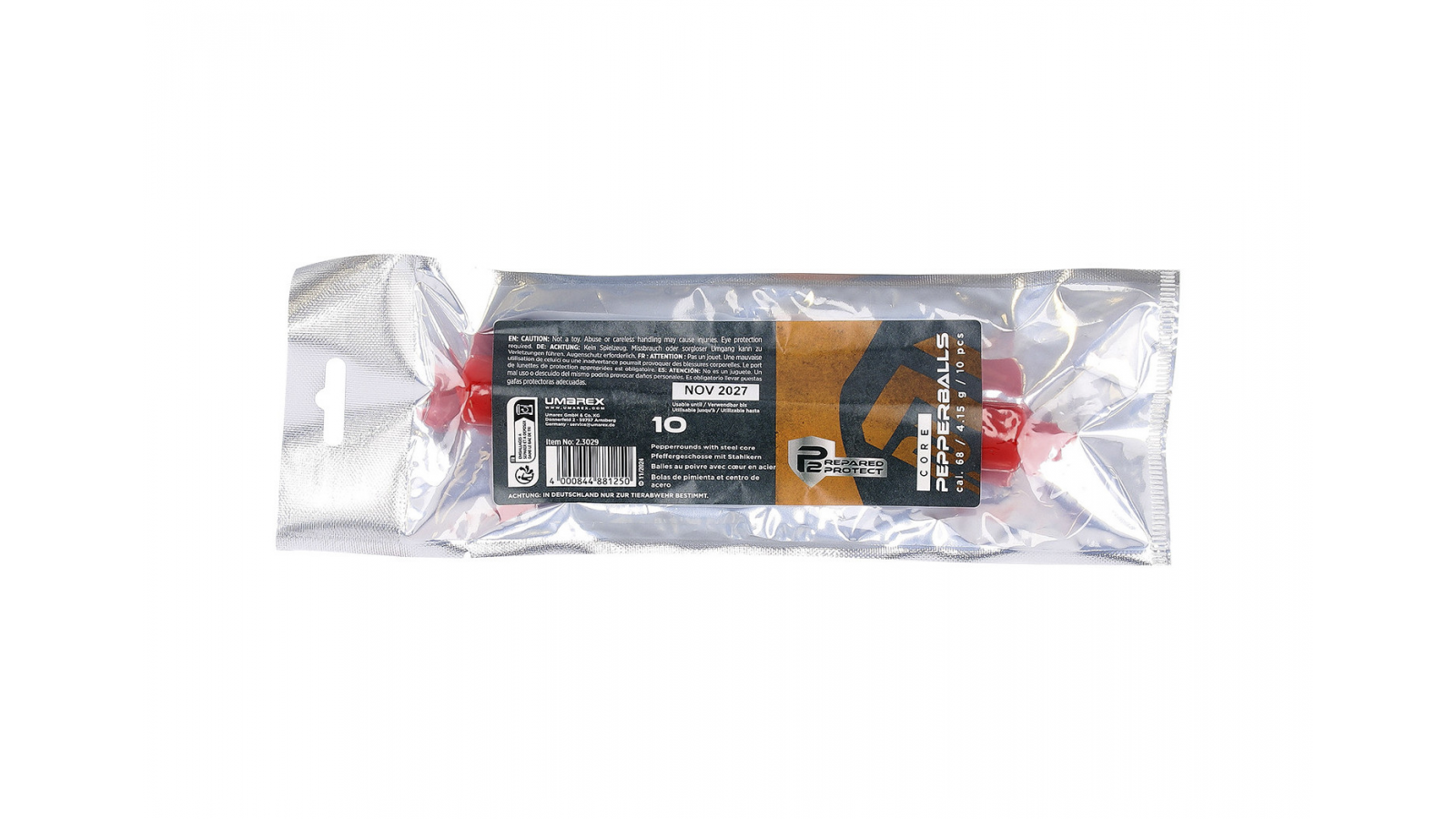Les nouvelles munitions au poivre avec noyau acier sont excellentes pour faire face aux agresseurs. Les 10 billes calibre 68 contiennent une poudre de poivre synthétique très efficace qui se répand à l'impact, et neutralise l'attaquant par irritation des yeux et forte gêne des voies respiratoires. Cette munition de défense de haute qualité est disponible en calibre .68, ces billes de défense Pepperballs sont dotées d'un noyau acier centré et d'une coque renforcée assurant une trajectoire stable et un éclatement fiable lors de l'impact.