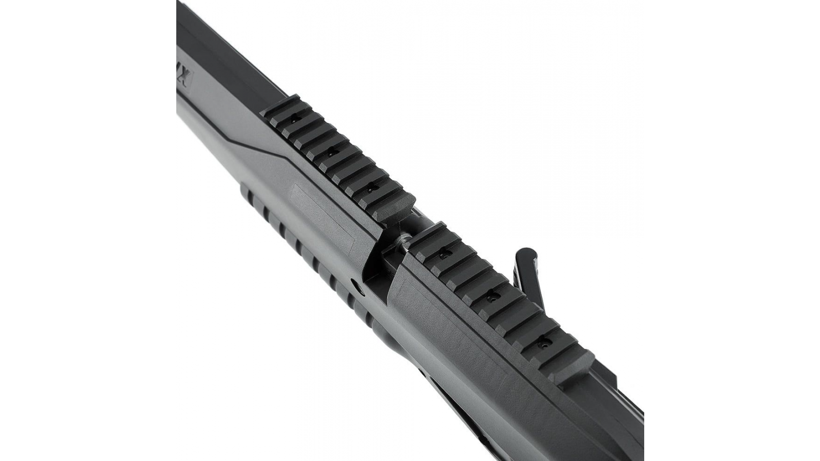 Canon et précision : Le canon rayé de 510 mm est conçu pour offrir une précision optimale, et le chargeur rotatif permet de charger jusqu'à 10 plombs de 4,5 mm (.177) pour un tir rapide. Le réarmement est fluide et rapide grâce à son levier linéaire. Le canon est fileté en 1/20x20UNF permettant le montage d'un silencieux.