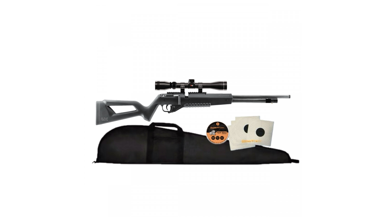 Pack carabine UX Iconix PCP avec lunette 3-9 x 40, plombs, cibles et housse de transport.