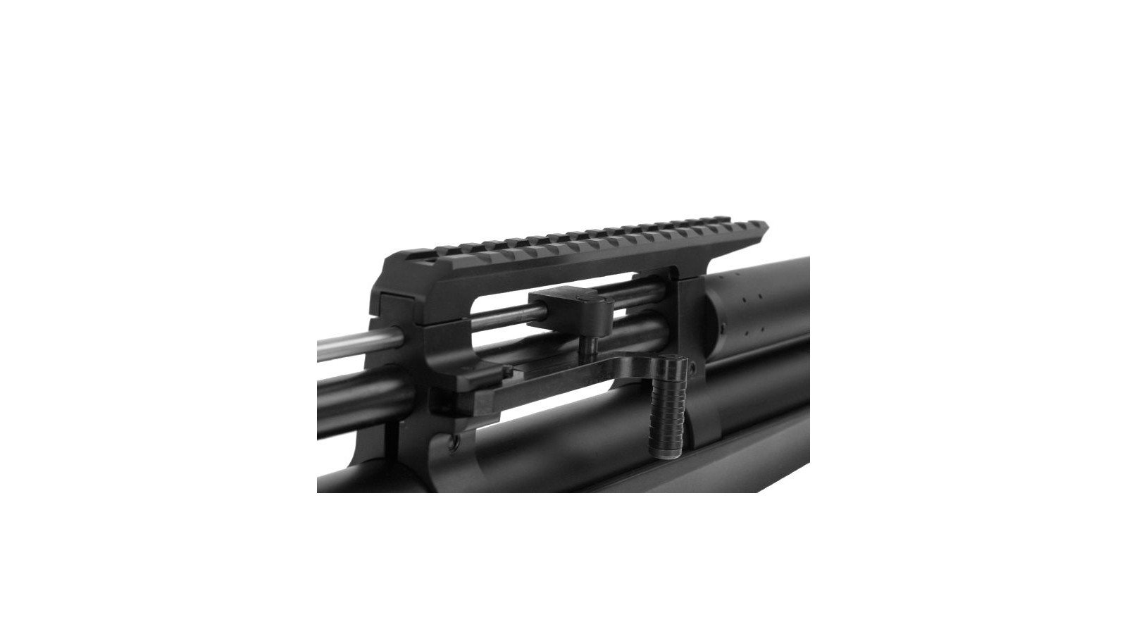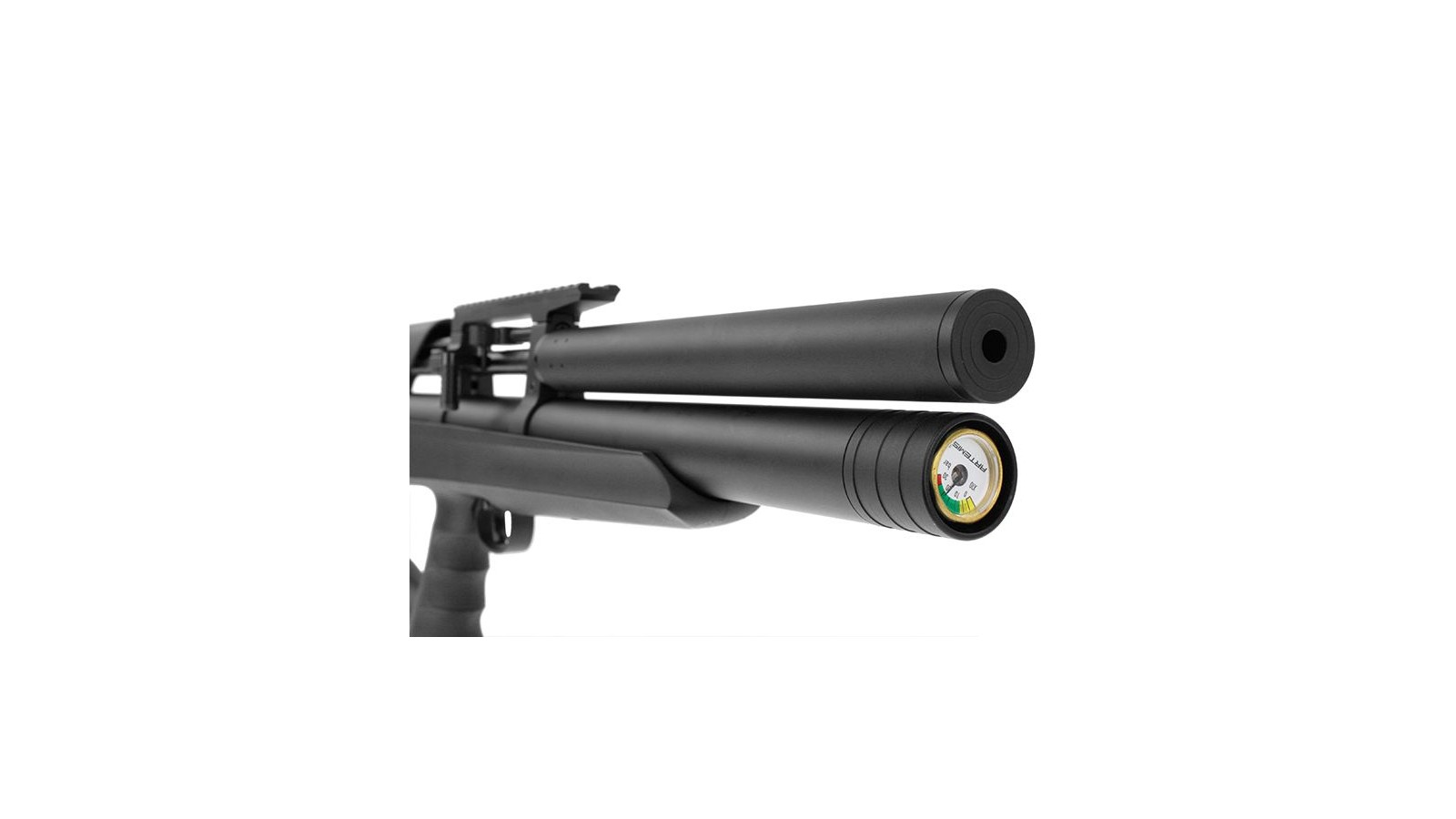 Ce modèle est conçu pour des longues distances et est équipé d'un rail de lunette Weaver/Picatinny surélevé, permettant de fixer une lunette de visée pour une précision accrue. Le cylindre d'air comprimé de 265 cm³ assure une alimentation en air constante et fiable, tandis que le régulateur intégré ajuste la pression d'air pour un tir optimisé à chaque coup.