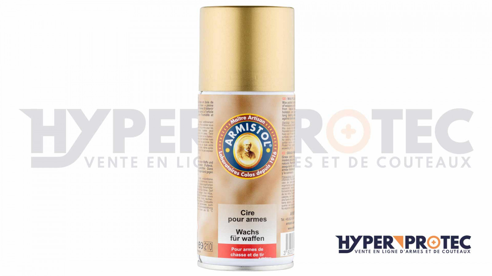 Aérosol de 150 ml de cire conçue pour vos crosses de fusils et carabines ainsi que vos articles en cuir lisse.