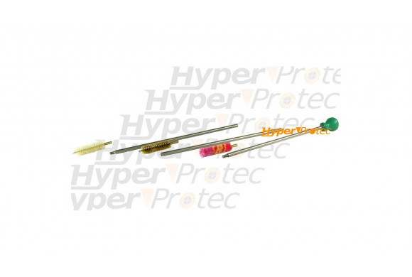 Entretien de votre arme calibre 14 mm Caractéristiques - 3 écouvillons : -- crin pour le nettoyage en douceur, -- acier pour le nettoyage en profondeur, -- laine pour le graissage - 3 baguettes démontables Longueur de 35 cm à 89 cm