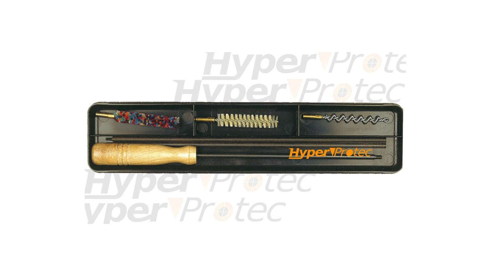 Entretenez votre arme 9 mm Caractéristiques - 3 écouvillons : -- crin pour le nettoyage en douceur, -- spirale acier pour le nettoyage en profondeur, -- laiton pour le graissage - 3 baguettes démontables en acier gainée - dont 1 baguette avec poignée en