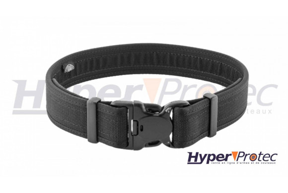 Ceinture tactique de sécurité en cordura rigide noire. Ceinture pour fixer son holster et d'autres accessoires. Ceinture a fermeture 3 points pour éviter une ouverture intempestive.
