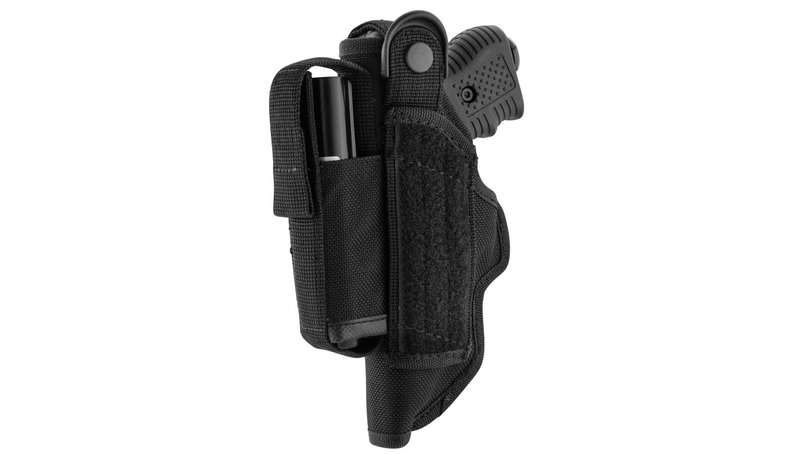 Holster de ceinture JPX, holster de ceinture JPX2, holster en cordura semi-rigide, étui pour droitier. Ce holster JPX2 est muni d'une poche située à l'avant, qui permet de porter une recharge supplémentaire.