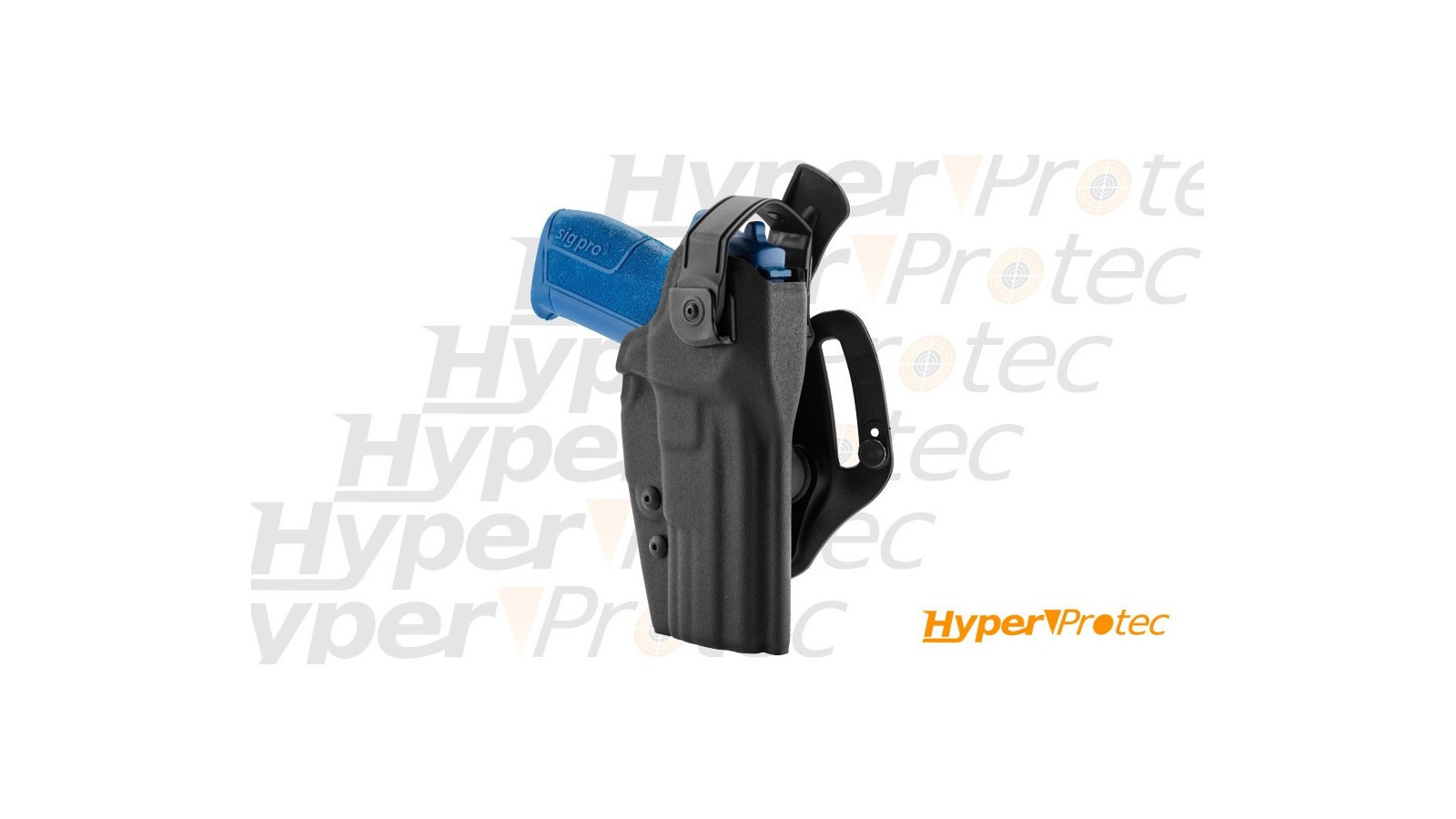 Holster professionnel de port à la ceinture et de rétention de sécurité de votre pistolet Sig SP2022. Adapté aux tireurs droitiers et conforme pour votre arme de poing de service ou pour le stand de tir. Bouton pressoir sur languette.