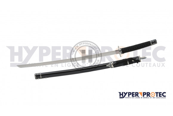 Un Katana de la marque Halle noir avec des décorations grise acier dan son fourreau, livré avec Kogatana et Kogai
