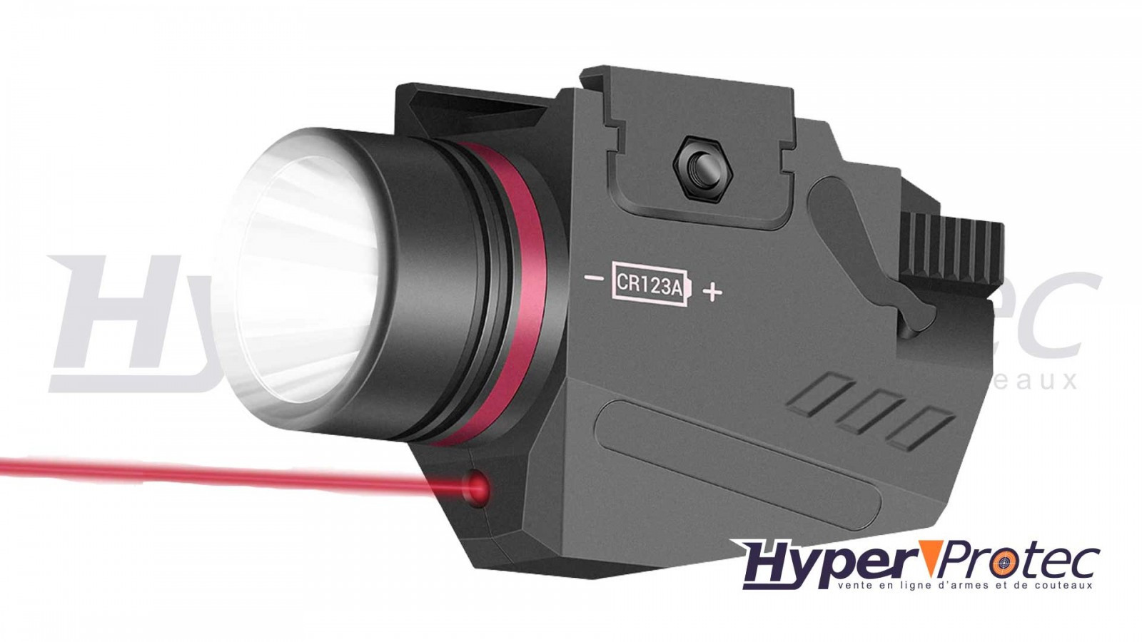La lampe et laser se fixe sur un rail de 22 mm à la norme Picatinny. Compatible avec la plupart des armes de poing ou carabines munies d'une fixation avec rail.