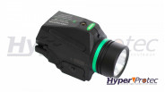 Lampe à led puissante de 200 lumens et pointeur laser vert pour pistolet. Existe en deux versions laser point vert ou laser point rouge au choix. Lampe 3 modes lampe seule, laser seul ou les deux en même temps.