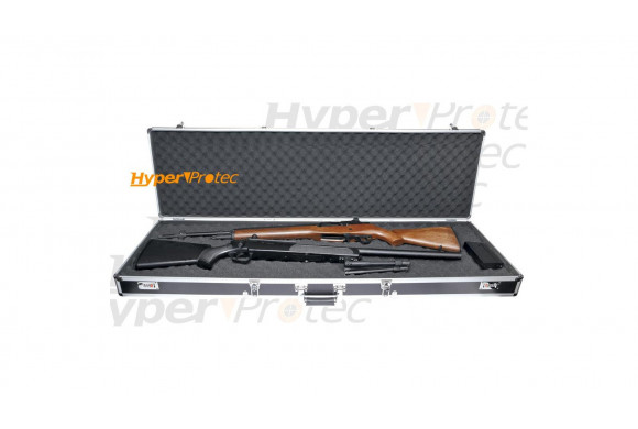 Mallette pour fusil et carabine e, matière aluminium, intérieur mousse alvéolée et fermeture par 4 clips dont 2 serrures à codes, structure aluminium, 2 serrures pour verrouillage et poignée de transport confortable en caoutchouc, intérieur mousse alvéolée.