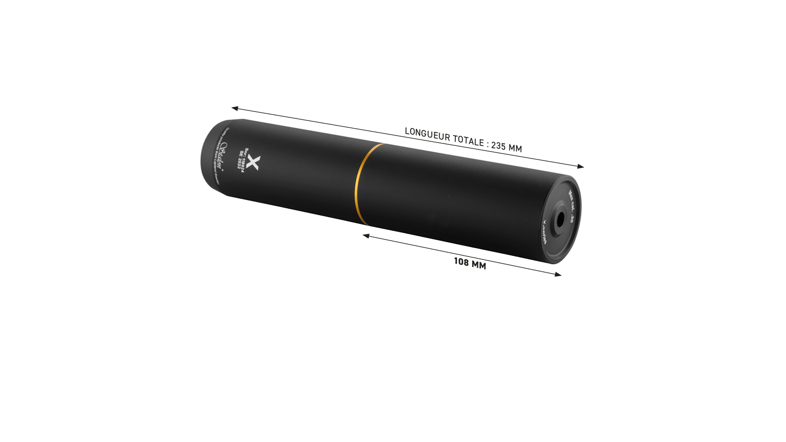 Silencieux STALON X108, un modérateur de son télescopique des plus performant avec une faible extension après la bouche du canon.