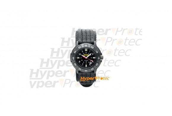 Montre bracelet noir Montre Smith & Wesson - 3 aiguilles affichant l'heure à la seconde près - bracelet en nylon - rétro-éclairage diffus de couleur turquoise permettant la lecture de l'heure en situation sombre - mouvement de précision à quartz - cale