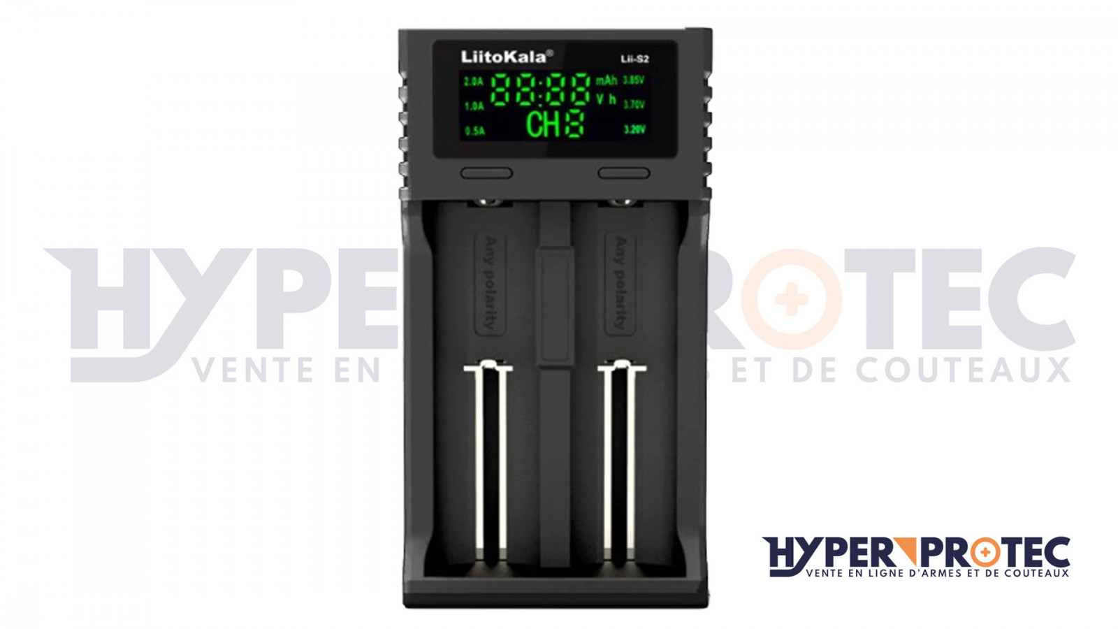 Chargeur de pile universel à affichage digital de la charge à brancher sur une prise USB ou une prise secteur avec l'adaptateur. Chargeur de piles à 2 places de pile batterie rechargeable de type LR03, AAA, LR06, AA, 18650, ou CR123, 10440, 14500, 16340, 17355, 17500, 17670, 18350, 18490, 18650, 20700, 22650, 25500, 26350, 26500, 26650, etc...