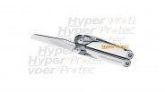 Les 2 couteaux, les ciseaux extra-résistants, l'adaptateur pour lames interchangeables sont accessibles de l'extérieur, c'est à dire même lorsque l'outil est replié.