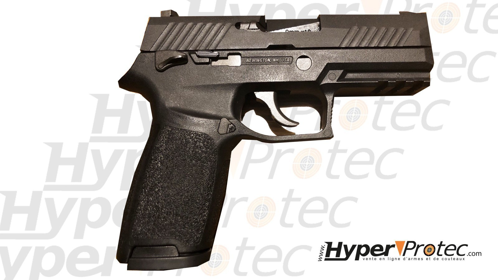 La réplique du P320 dispose comme le vrai Sig Sauer P320 d’un corps polymère et d’une culasse métal.
