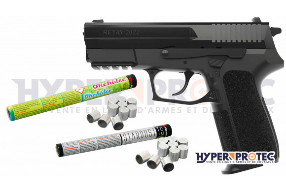 Pistolet d’alarme 9 mm Retay S2022, est la réplique du Sig Sauer SP2022 en dotation dans les services de douanes, de police et de gendarmerie. Il possède un chargeur d’une capacité de 17 cartouches (+1 en chambre).