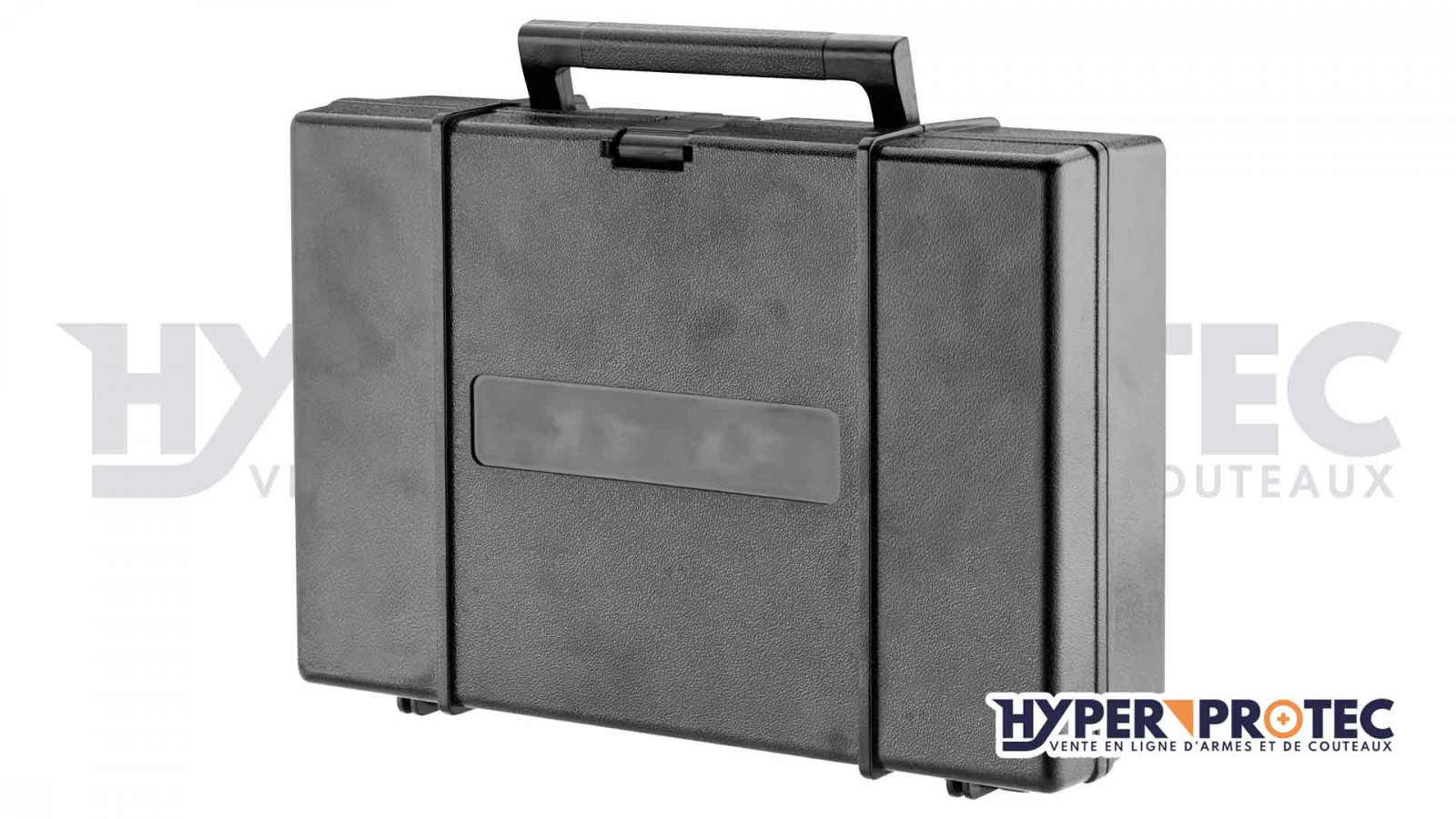 Pistolet livré dans une mallette ABS noir à mousse prédécoupée avec 14 billes caoutchouc et 2 sparclettes 12g de CO2.