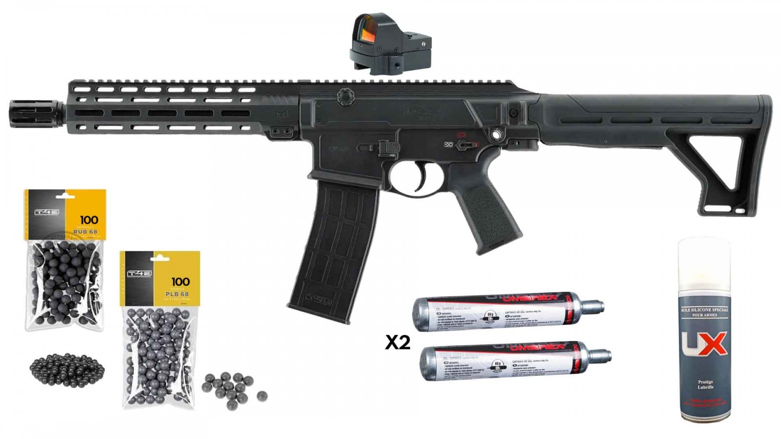 La carabine fonctionne avec toutes les munitions T4E en calibre 68, qu'elles soient rondes ou de précision. Cette compatibilité étendue vous permet de choisir le type de projectile adapté à votre pratique : balles caoutchouc pleines pour l'impact, balles poudre pour le marquage, ou projectiles de précision pour optimiser la trajectoire.