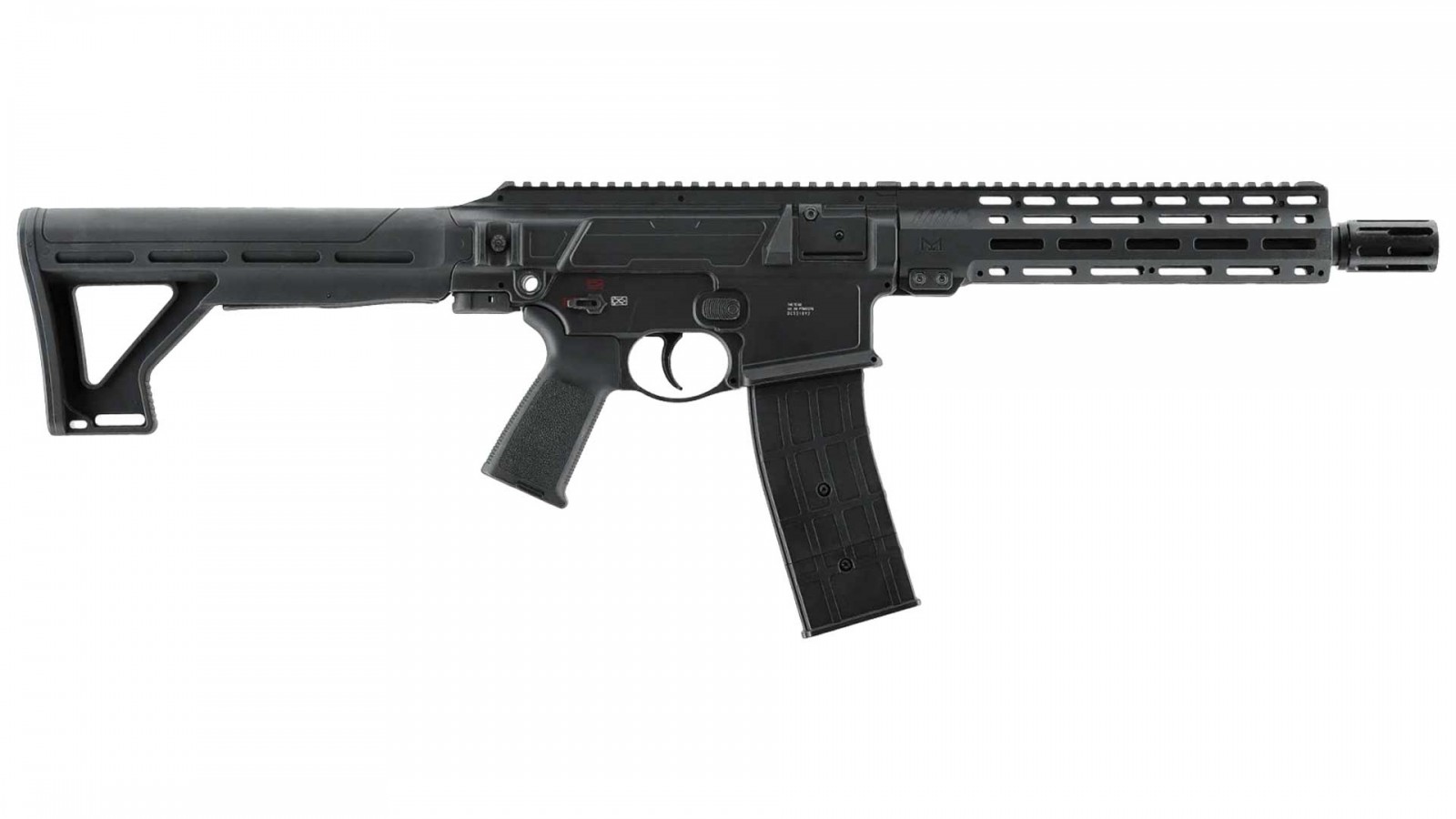 La conception type AR confère à cette carabine une ergonomie reconnue et appréciée des tireurs. Sa construction ambidextre facilite la prise en main pour les droitiers comme pour les gauchers. La poignée AR standard offre une préhension ferme et naturelle, tandis que le garde-main intègre des emplacements M-LOK qui permettent d'installer divers accessoires tactiques selon vos besoins.