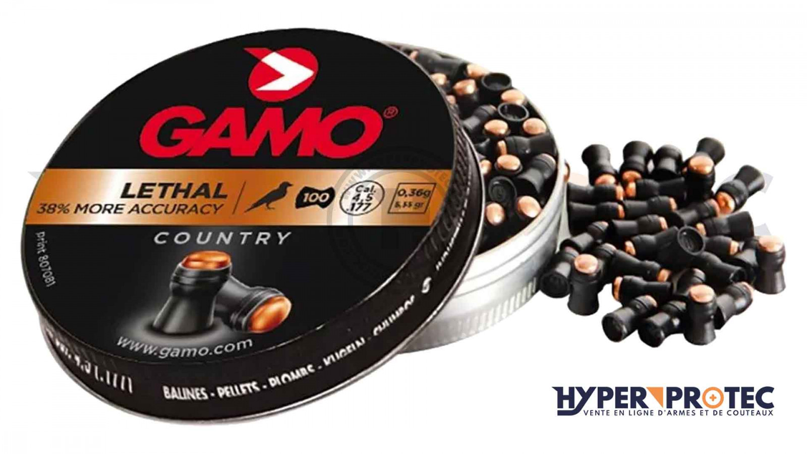 Plombs 4,5 mm Lethal. Armurerie en Alsace expédie à domicile boite de 100 plombs GAMO Lethal en calibre 4.5 mm. Plomb de tir pour arme à air comprimé, doté d'une jupe en acier, longue de 7.5 mm, ce plomb est rapide car aérodynamiques, son design spécial permet de traverser toute plaque en métal de faible épaisseur genre boite de conserve.