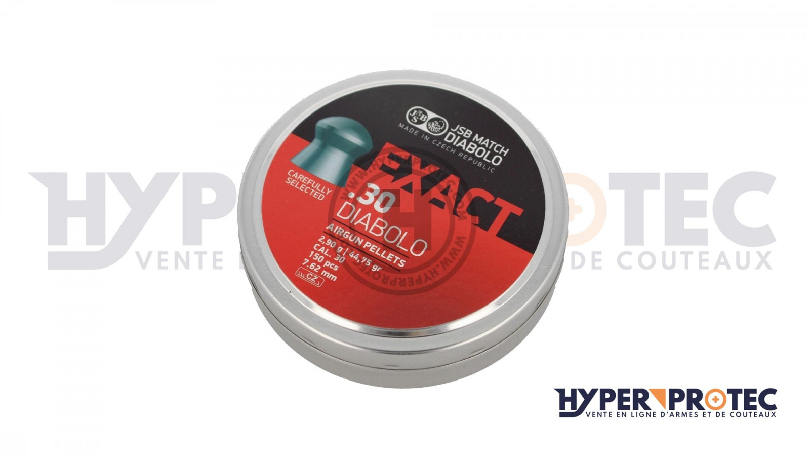 Boite de 150 Plombs JSB Exact Tête ronde 7.62 mm (cal.30) 2.90 grammes (44.75 grains).