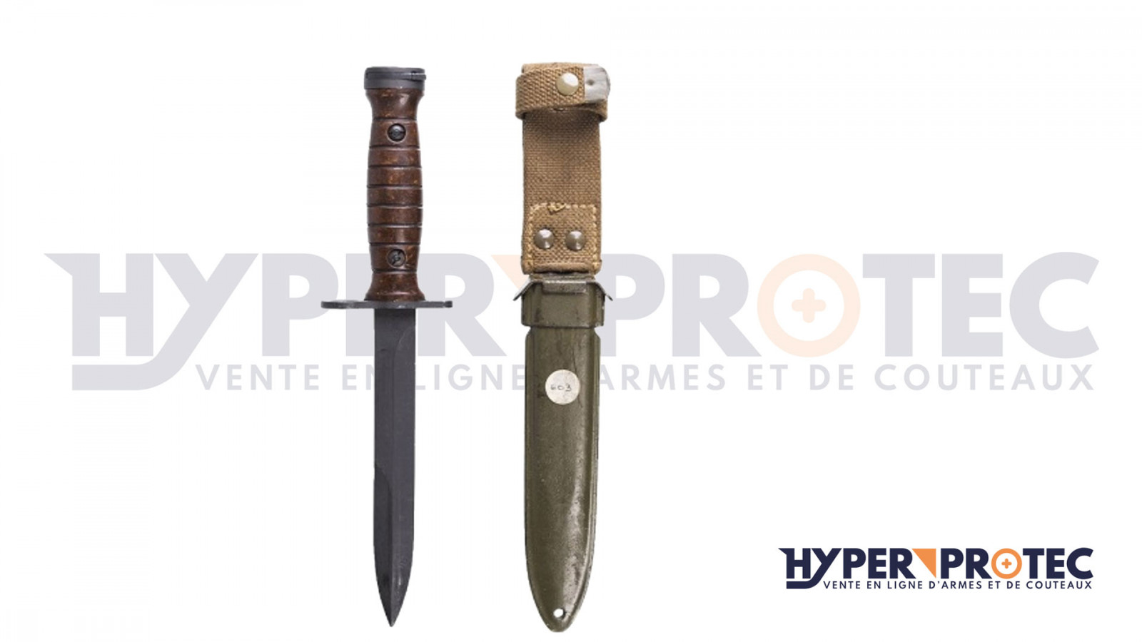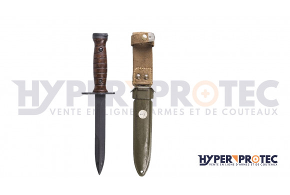 Cette fidèle reproduction est de marque Mil-Tec. Elle a une allure très similaire par rapport aux baïonnettes US M4 originales utilisées pendant la deuxième guerre mondiale. En effet, cette baïonnette présente un manche en bakélite au design particulier des US M4. Comme, les poignards US M4, cette reproduction dispose de la perforation au niveau de la garde qui lui permet de se fixer directement sur la carabine M1. Elle est fournie avec un étui, des plus ressemblants également en synthétique, métal et tissu cordura.