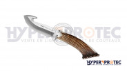Corne de cerf Modèle - manche en corne de cerf véritable - garde en laiton - lame lisse - lame en acier inoxydable - lame à dépouiller Longueur du couteau 24 cm Longueur de la garde 3.3 cm Longueur de la lame 11 cm Epaisseur de la lame 4 mm Poids 170
