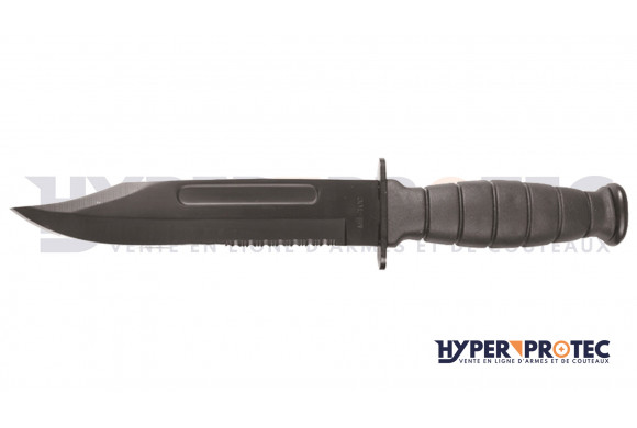 Poignard avec étui souple Modèle - poignée en métal noir -manche caoutchouté - lame en acier inoyxydable - lame mixte : lisse et crantée - une soie traversante (lame et manche en 1 pièce) - attention, ce poignard pas cher est de 2ème choix, il a des traces d'usures sur la lame.