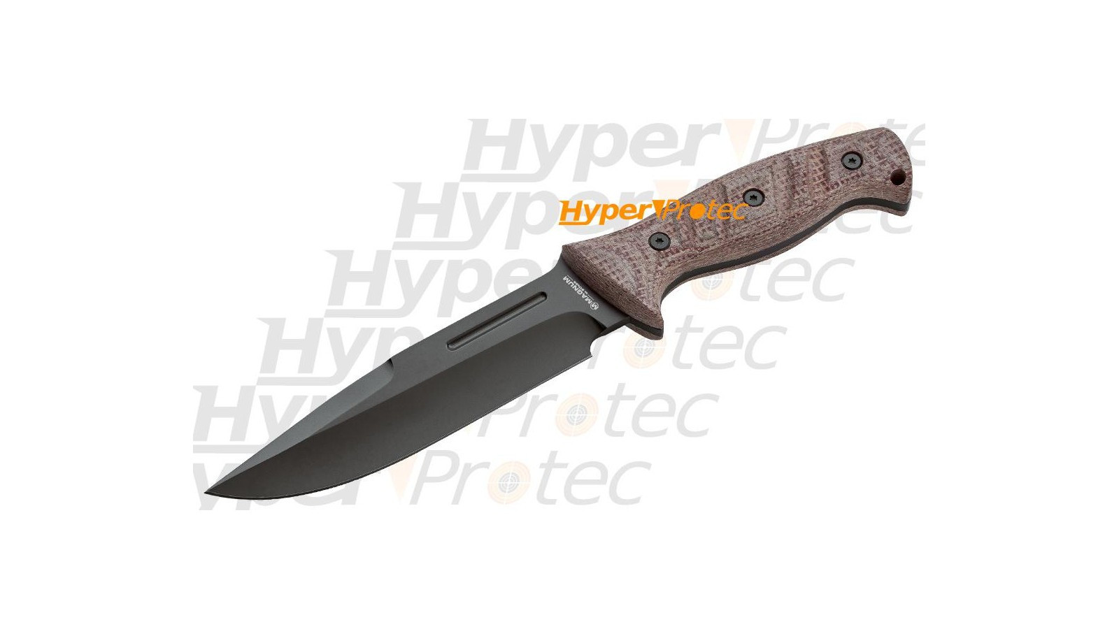 Magnum Desert Warrior Modèle - manche en bois - lame lisse - lame noire - lame en acier inoxydable 440 Longueur du couteau 30.5 cm Epaisseur de la lame 5 mm Longueur de la lame 17 cm Poids 395 g Le poignard Magnum Desert Warrior est livré avec un étui.