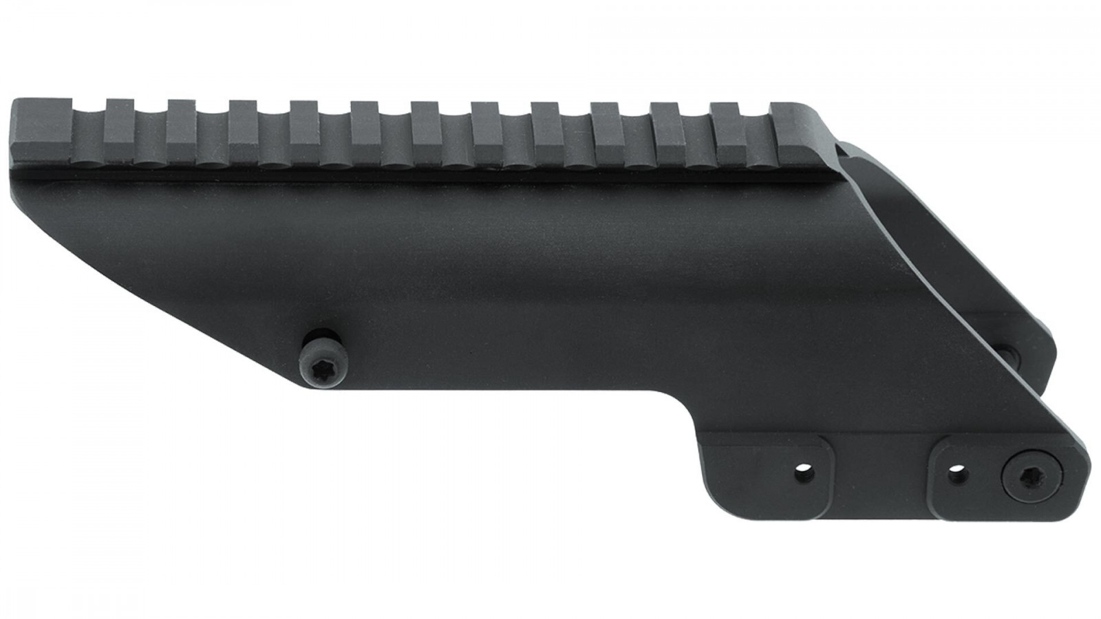 Un rail ajouré vous permettant une prise de visée avec le guidon originel, ce montage UTG apporte un design tactique à votre fusil à pompe et facilite le montage d'un red dot, de plus son support latéral de 4 cartouches permet des réapprovisionnements plus rapides.
