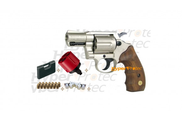 Colt Detective Special chromé crosse bois en version alarme calibre 9. Revolver a blanc tir tous types de cartouches pour revolver 9 mm : ref 3440249 - cartouches à blanc 9 mm :- cartouches gaz cs 9 mm :- cartouches poivre rouge 9 mm : - cartouches Flash