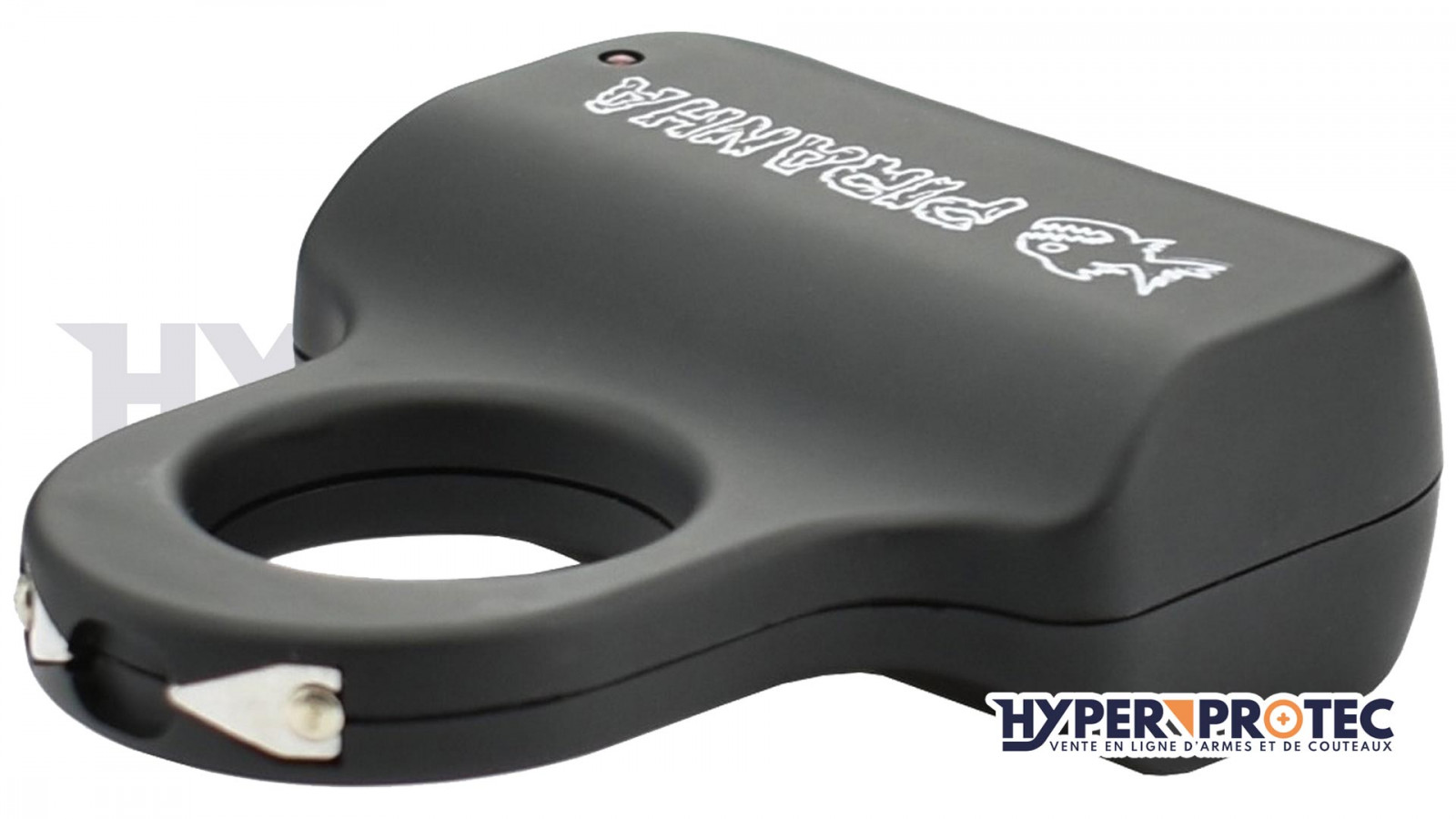 Bague électrique Ring shocker 2 000 000 Volts Piranha. Cette bague électrique est un taser transformé en bague ergonomiquement conçu et pensé pour être discrète, tout en évitant de vous la faire subtiliser car elle restera dans la paume de votre main fermé