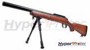 Carabine airsoft genre fusil de chasse à canon custom silence et crosse genre bois. Réplique airsoft WELL modèle MB02BW à armement manuel par verrou très réaliste. Carabine airsoft permet de tirer en position couché comme un sniper.