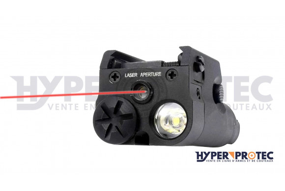 Pointeur laser et lampe puissante à led pour arme de poing petit et compact. Lampe à led de 200 lumens et pointeur laser rouge aux formes élégantes.